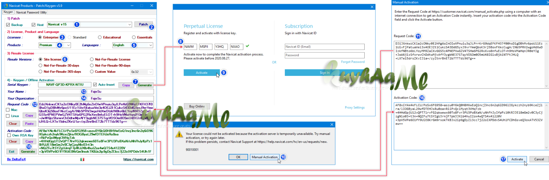 - kemudian pilih Manual Activation, Copy Request Code ke kolom Keygen