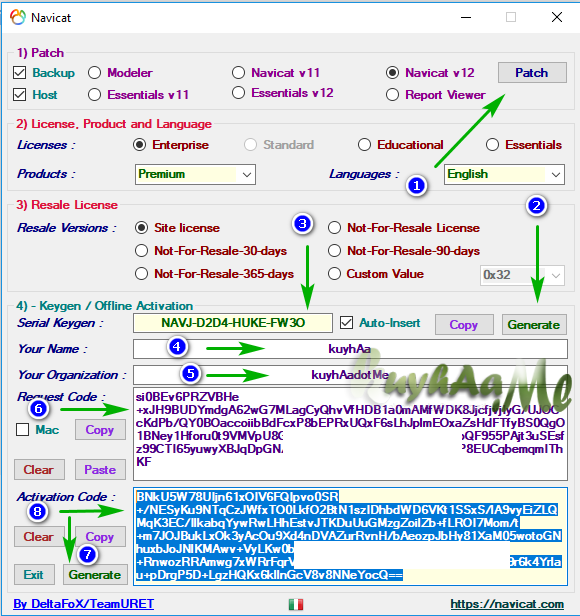 - lalu Generate pada bagian “Activation Code” silahkan copy dan paste ke kolom Activation Code Navicat